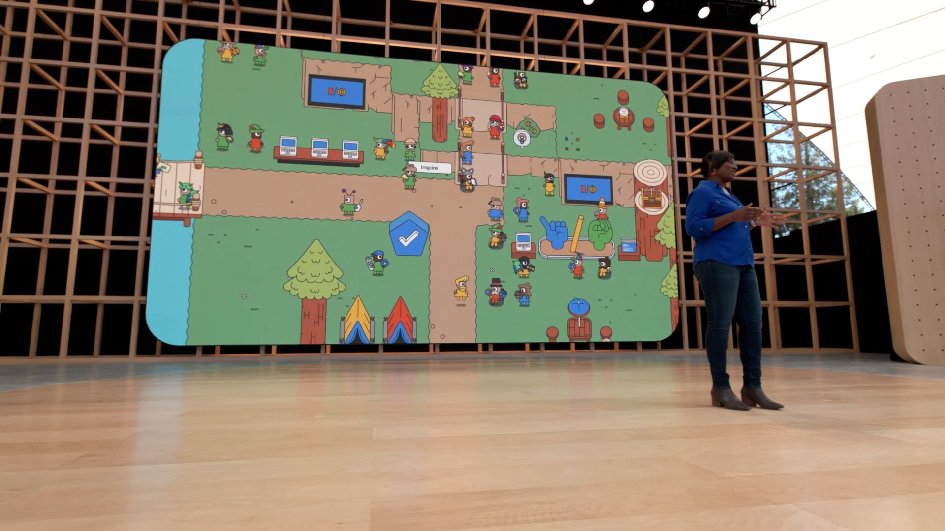 In the online experience you can explore the world, learn about new Google products, collect virtual swag and chat with developers and Googlers from around the world. Essentially, it's a social platform designed to bring people together.
