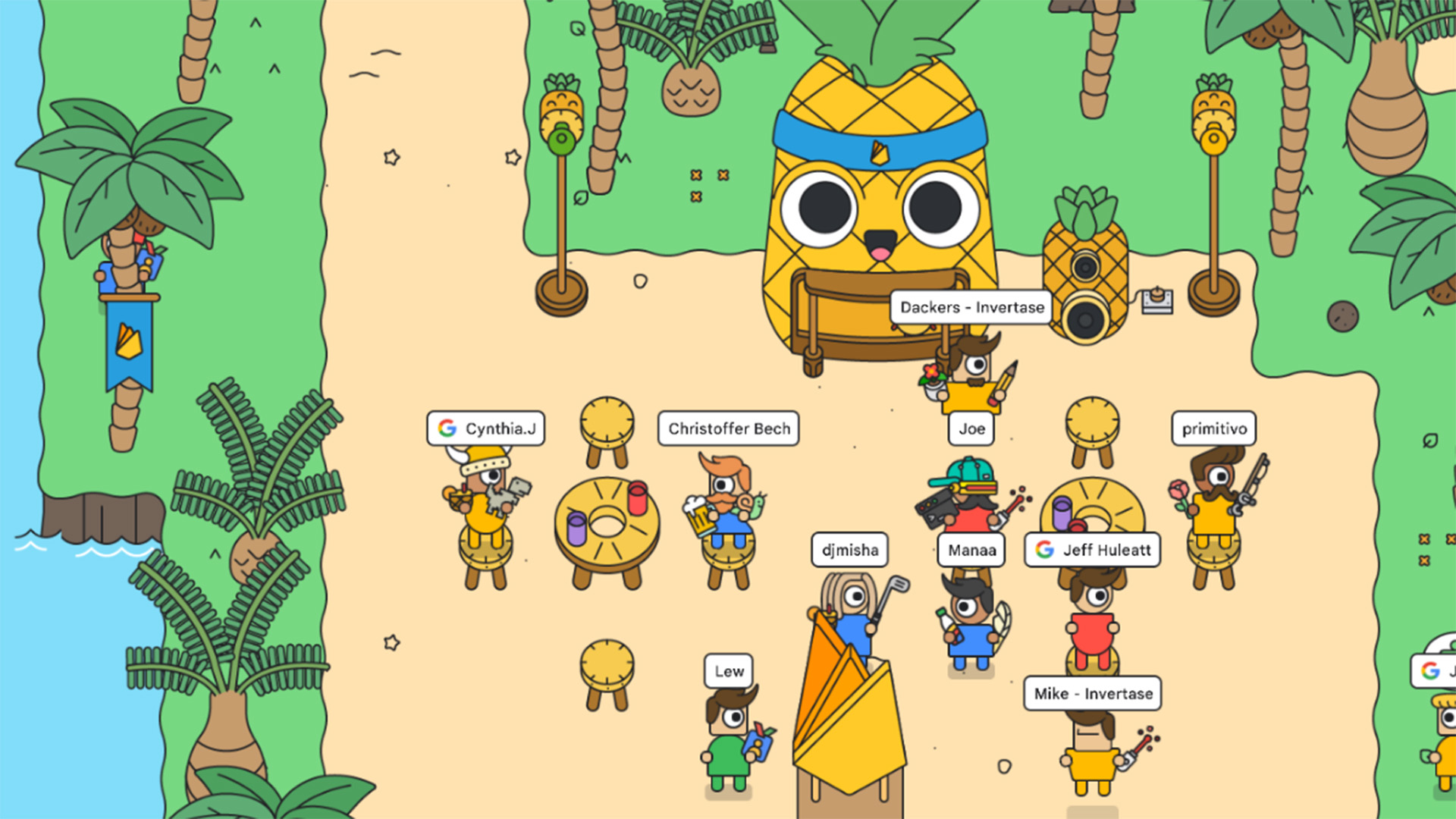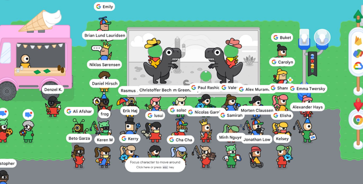 In the online experience you can explore the world, learn about new Google products, collect virtual swag and chat with developers and Googlers from around the world. Essentially, it's a social platform designed to bring people together.