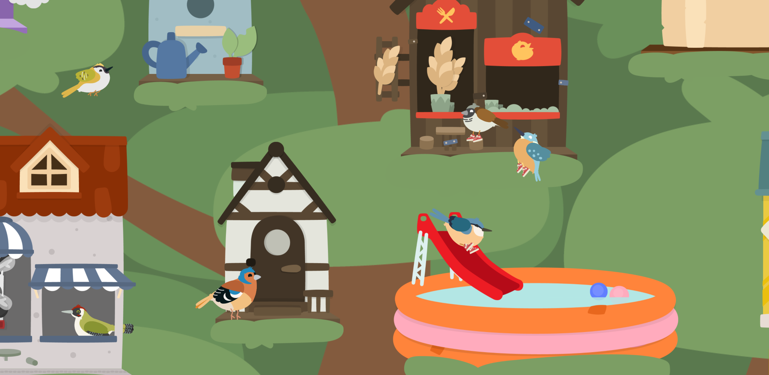 In the game you can attract different types of birds to your city by building houses, restaurants and airports for the birds that love to travel far away. All the buildings and houses in the game are exaggerated and imaginative, and play on the childish fantasy of what is inside a birdhouse that makes it so attractive that our birds want to live there.