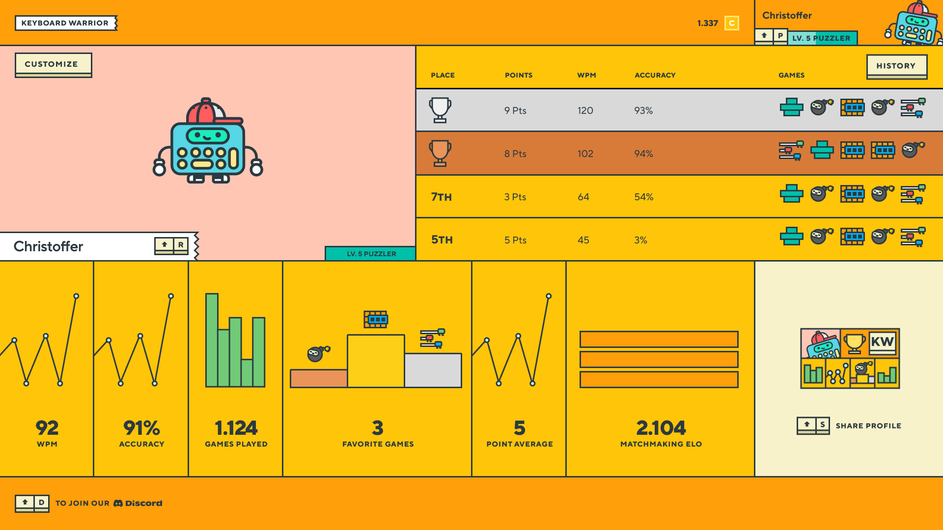 Unleash your inner wordsmith in Keyboard Warrior, a social typing frenzy! Race your friends in real-time matches, conquer clever challenges and dominate the leaderboards. It's the perfect blend of fun and learning, where every keystroke takes you closer to beeing a true typing champ.
